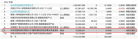 一直以来,重阳投资都对燕京啤酒青睐有加,对其投资可以追溯到2012年。在2012年年报中重阳3期首度现身燕京啤酒的十大流通股东中,持股数量为1626.82万股,持股比例为0.64%。